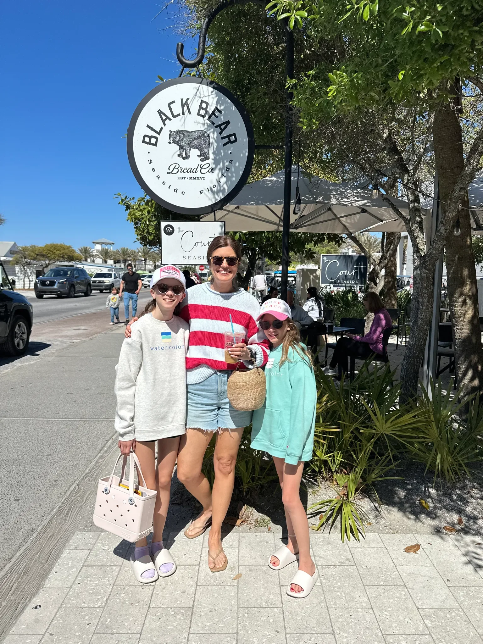 We found our morning rhythm quickly and after a quick workout at the fitness center we walked into Seaside for breakfast and discovered the not-so-hidden gem Black Bear Bread Company. One hundred percent worth the long line each morning (25-30 mins) for the best lattes in 30A. Also, don’t sleep on the food – the breakfast sandwiches, bowls, and pastries are amazing. We also did breakfast one morning at Crackings in Grayton Beach (cute vibe and decent diner-style food) and breakfast sandwiches at Modica Market in Seaside but Black Bear stole the breakfast show. Modica Market is a convenient option for groceries, wine, beer and other supplies though.